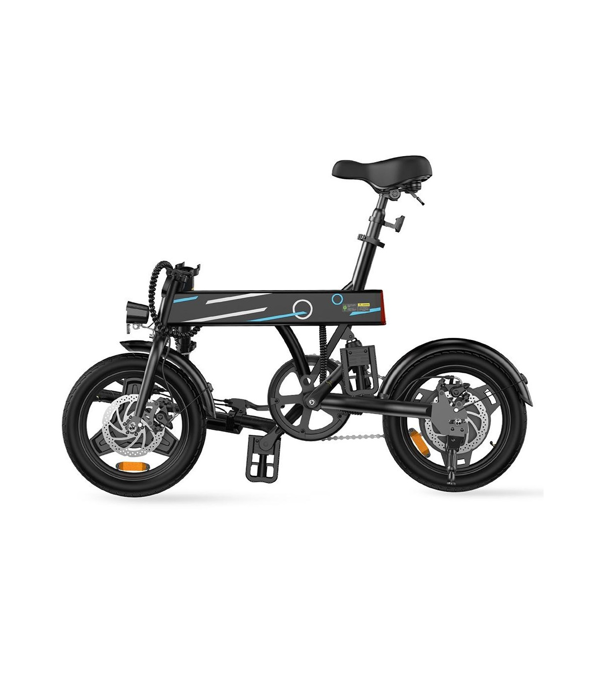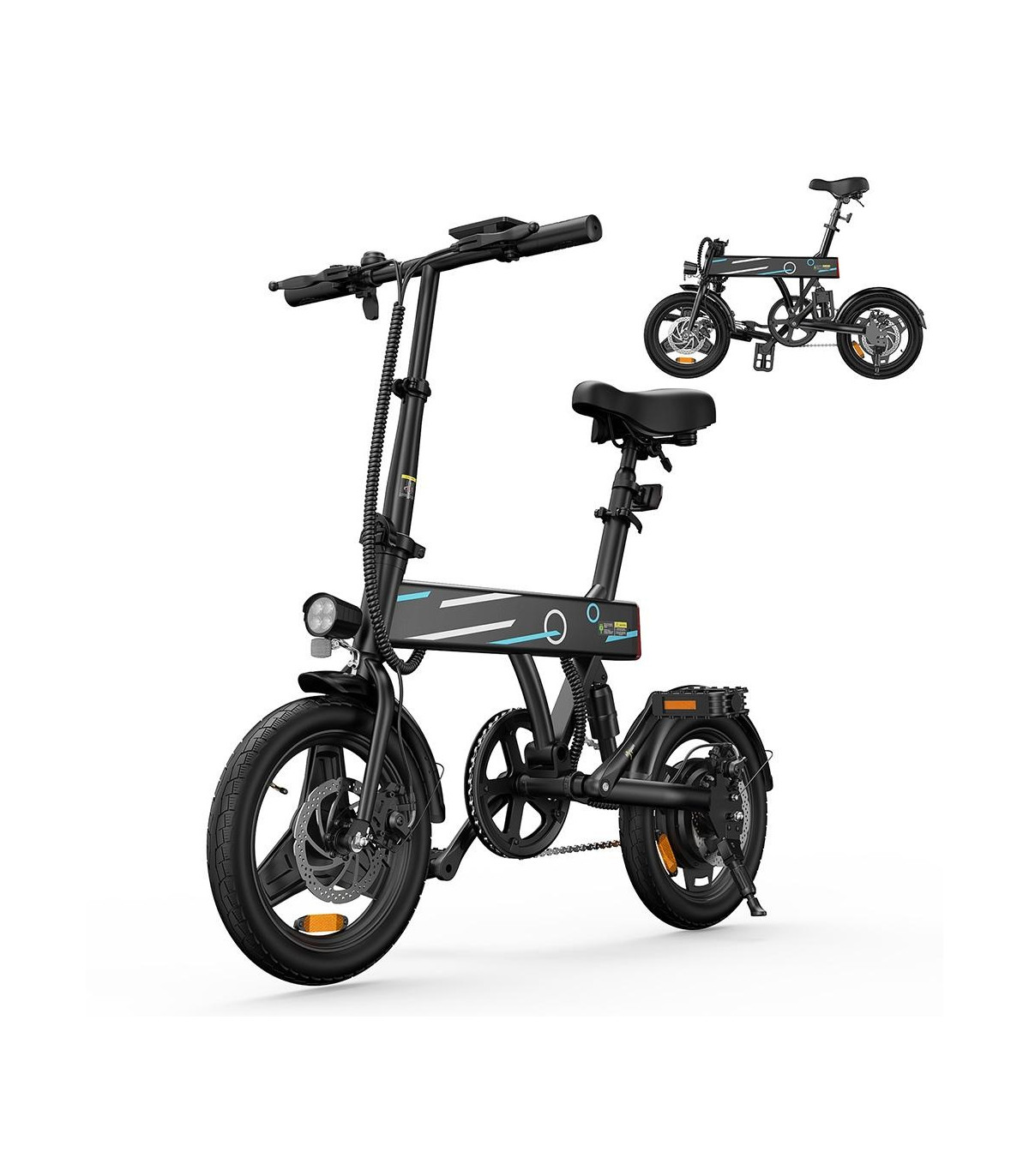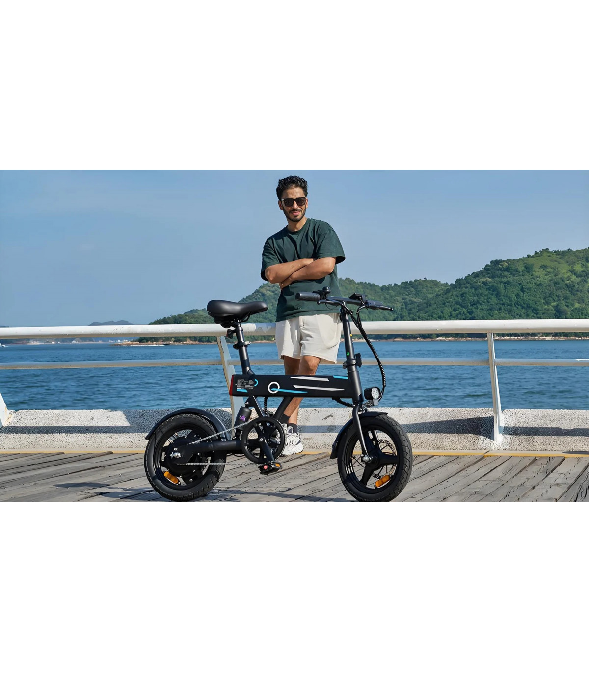 500W (пикова мощност) безчетков мотор 36V10Ah батерия, 5-6 часа зареждане 14' тънки гуми Максимална скорост 25 км/ч 60km с едно зареждаме (в pedal assist режим) Механични дискови спирачки Сгъваема рамка Тегло на...